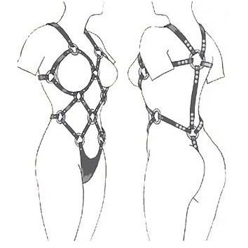 Pratique BDSM com este arnês de couro para mulheres, completamente conectado de cima a baixo e 100% ajustável.