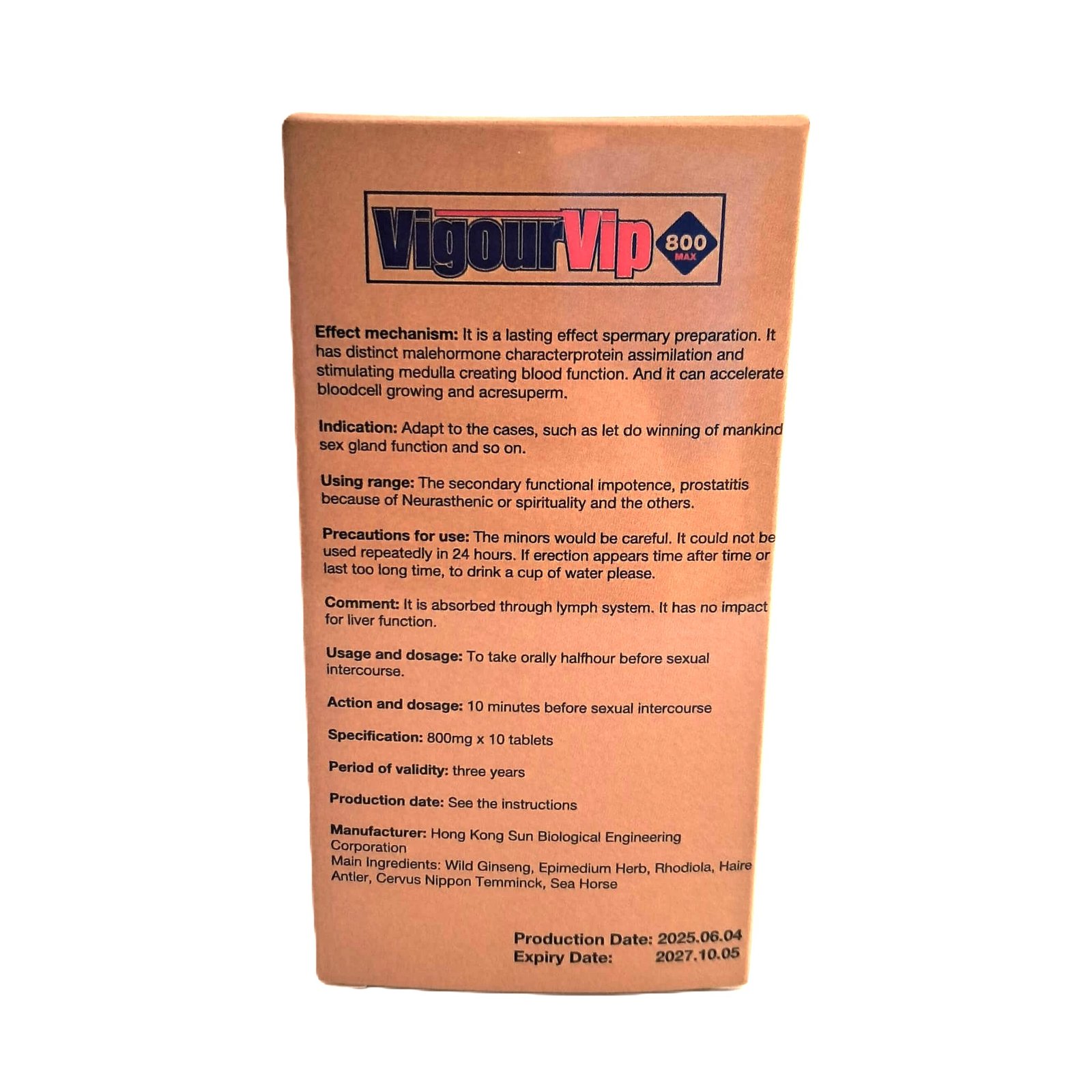 Uma Caixa de Vigour Vip MAX 800mg contém: 10 comprimidos.